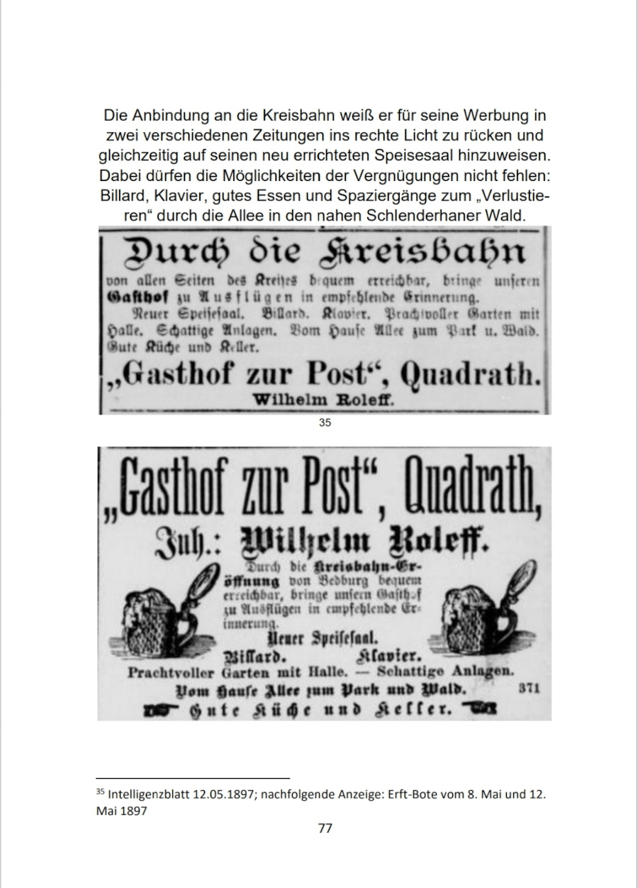 Einen besonderen Platz nehmen Bilder der über 100 Ansichtskarten des Quadrather Fotografen Paul Roleff, einem Pionier der Fotografie, aus den Jahren 1902-1922 ein. Diese wurden erstmalig aus mehreren Archiven zusammengetragen und in diesem Buch vereint. Es gibt hier Ansichten von Gebäuden und Industrielandschaften des Altkreises Bergheim und darüber hinaus. Teilweise sind die Bauwerke der Stadtmodernisierung, den Weltkriegen oder der Braunkohleförderung zum Opfer gefallen und nicht mehr vorhanden.