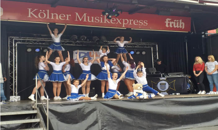 Mit ihren fröhlichen und gut choreographierten Tänzen eröffneten die Erftmariechen um 14:00 Uhr das Unterhaltungsprogramm auf der Bühne.