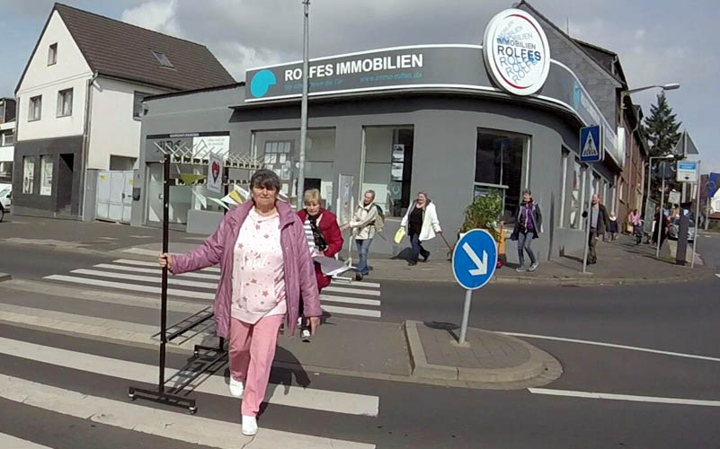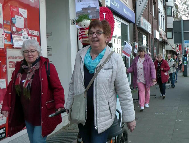 Alle packen mit an und eine kleine Karawane bewegt sich in Richtung Bahnhof.