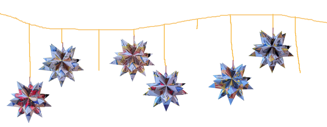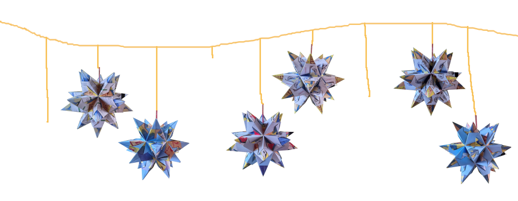 In unserer beiden Sternenketten fehlen drei Sterne. Welche Sterne müssen jeweils ergänzt werden, damit jeder Stern in jeder Kette nur einmal vorkommt.